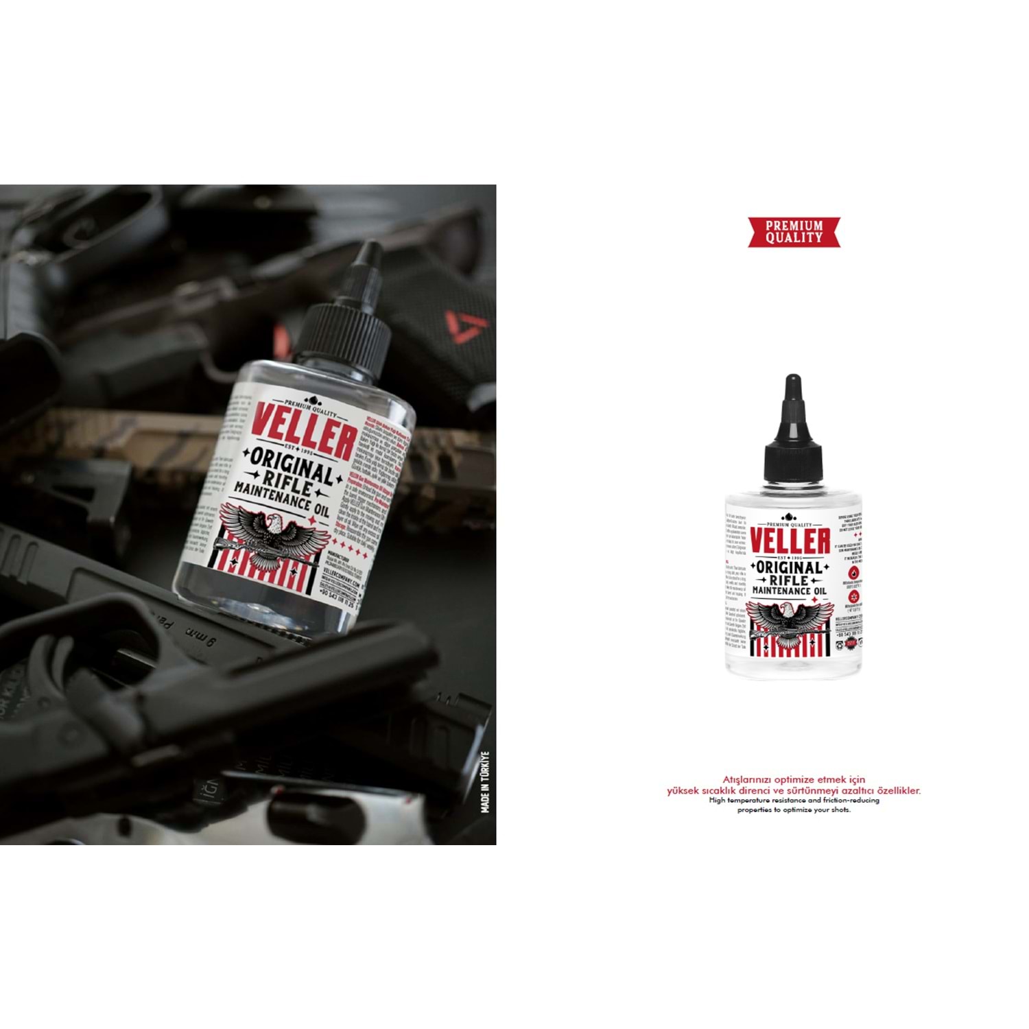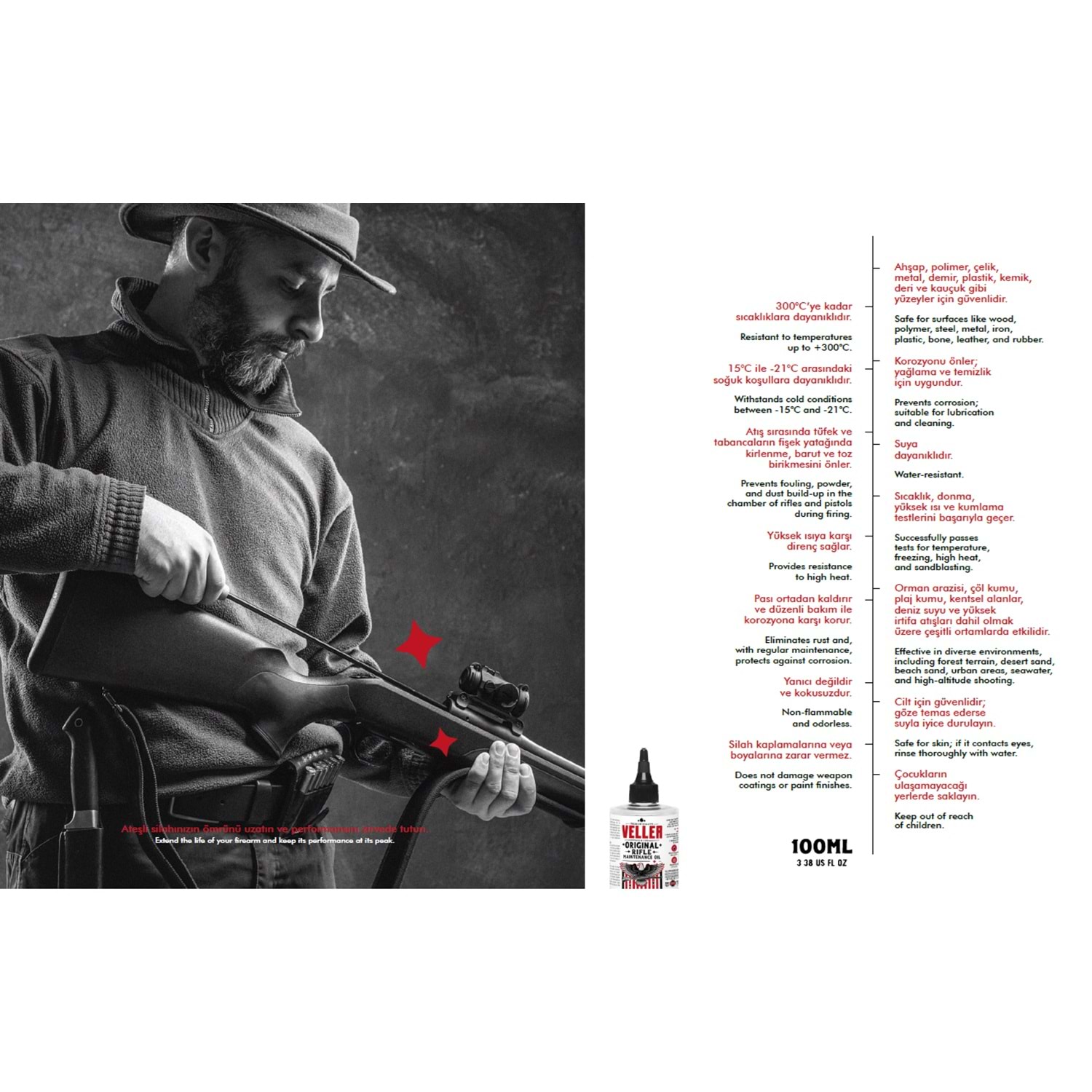 4. Temizlik: VELLER Silah Bakım Yağı silahın hareketli ve metal kısımlarına nazikçe