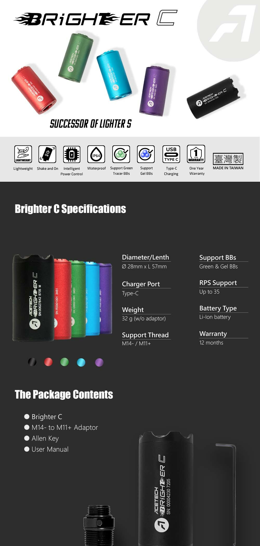 Acetech Brighter C Kompakt Tracer Unit Susturucu + Tabanca Adaptörü - Yeşil