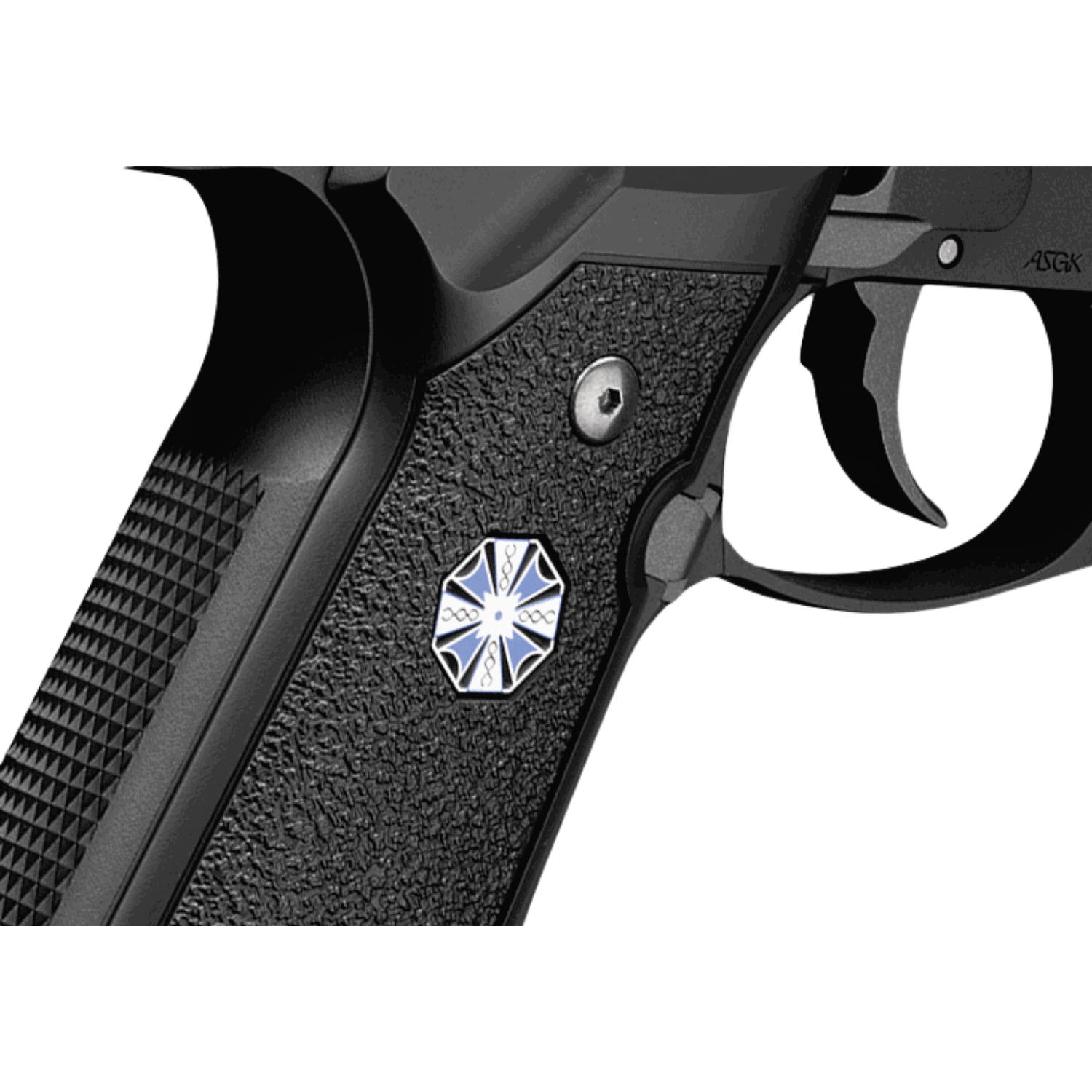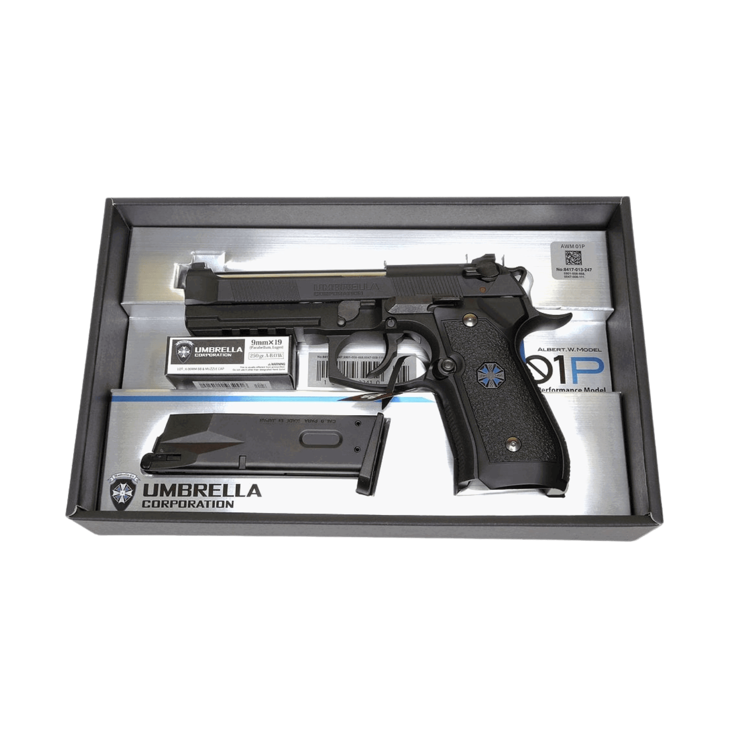 Tokyo Marui “Biohazard” Albert. W. Model 01P GBB Airsoft Tabanca, Resident Evil 7 evrenindeki Blue Umbrella temasını taşıyan, görsel detayları ve taktik odaklı yapısıyla öne çıkan özel bir gas blowback modeldir.