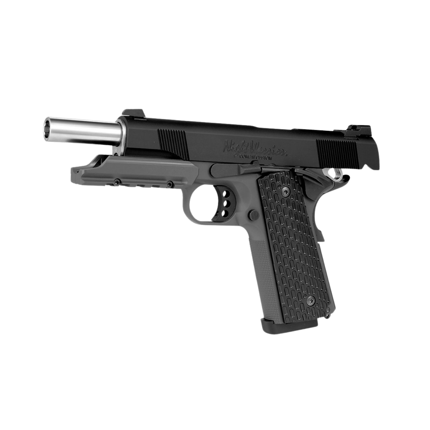5.1 inç üst kapak yapısına sahip bu model, tam boy gövde formu ile elde dengeli bir kullanım sunarken; mat siyah üst kapak ve kabza ile sniper gri gövde ve alt ray birleşimi sayesinde güçlü bir taktik görünüm oluşturur.