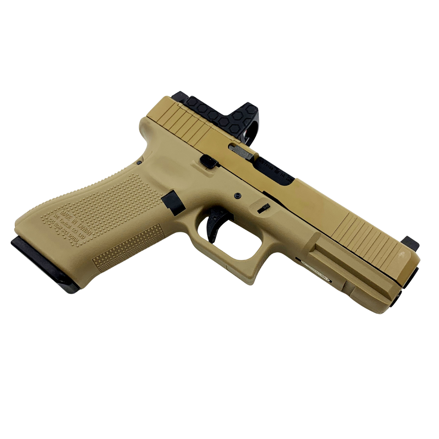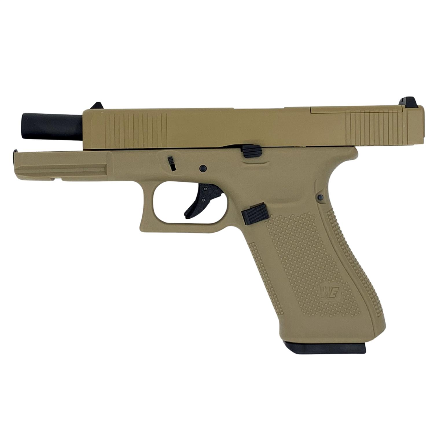 WE G17 GEN5 MOS TAN, Modular Optic System (M.O.S.) altyapısı ile üretilmiş, optik montaja hazır Gas Blowback (GBB) airsoft tabancadır.