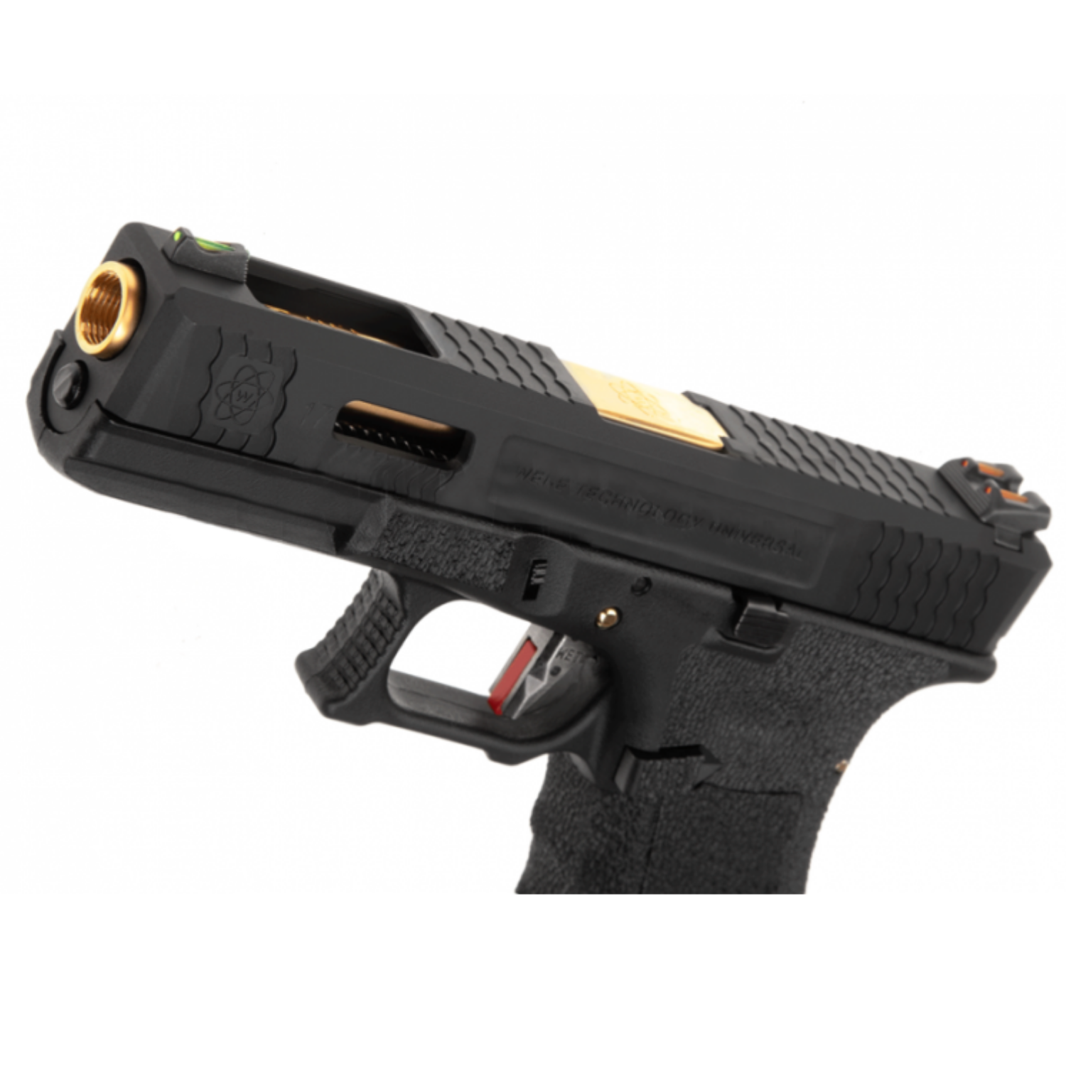WE GLOCK17 T1 (WE-G001WET-1), klasik Glock 17 platformunu modern ve sportif bir dokunuşla sunan Gas Blowback (GBB) airsoft tabancadır.