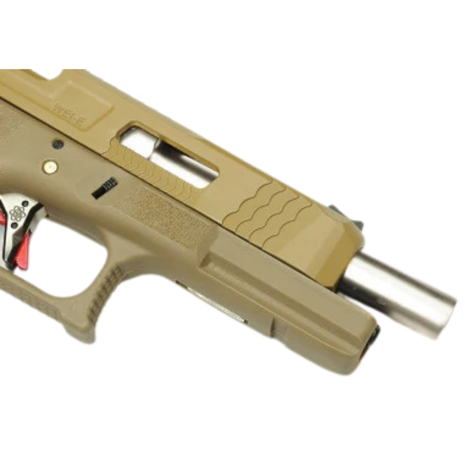 | TAN kızak ve TAN gövde kombinasyonu, silver dış namlu ile kontrast oluşturarak dikkat çekici bir görünüm sağlar. |