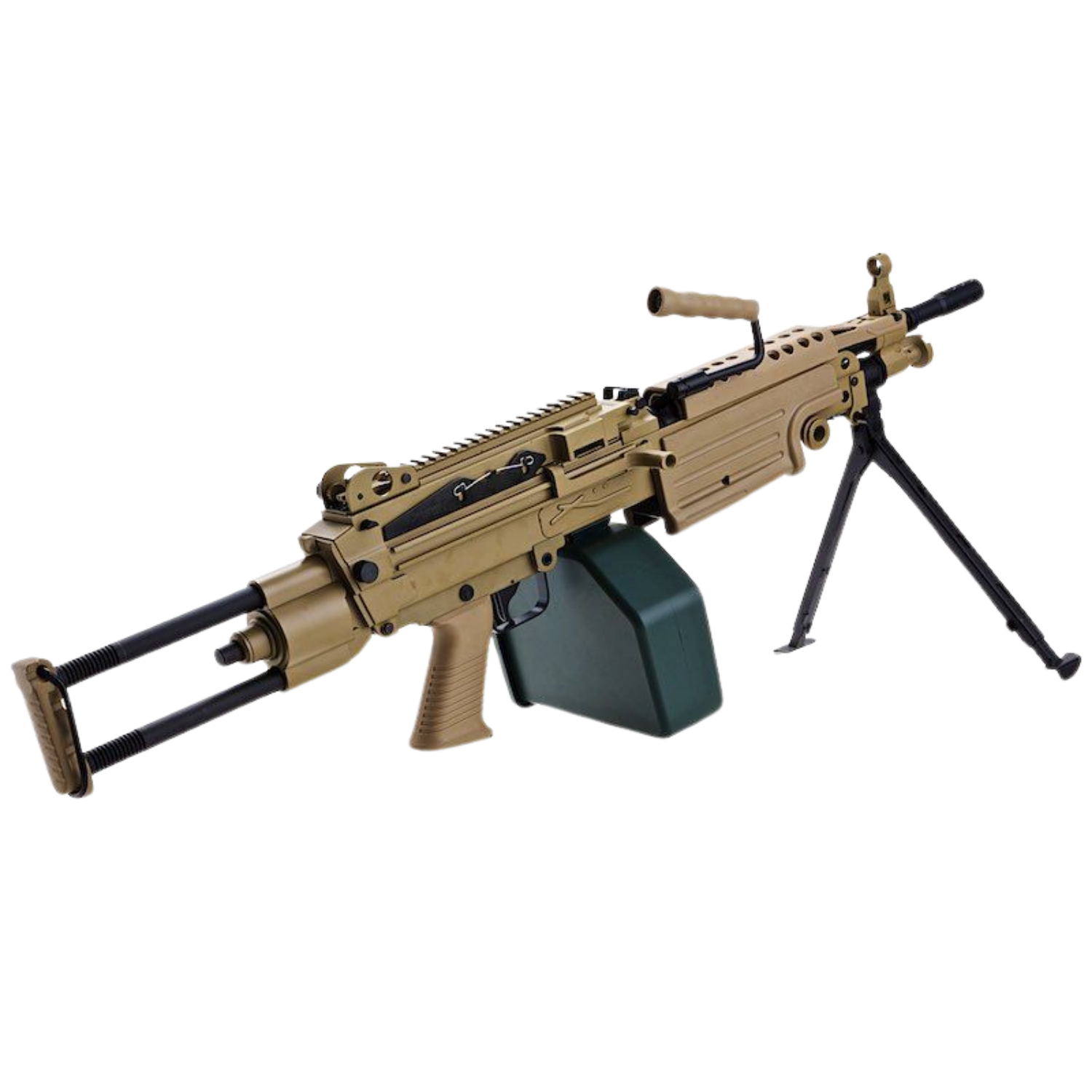 A&K M249 PARA, yüksek kapasite, dayanıklılık ve gerçekçi kullanım arayanlar için geliştirilmiş güçlü bir destek tüfeğidir.