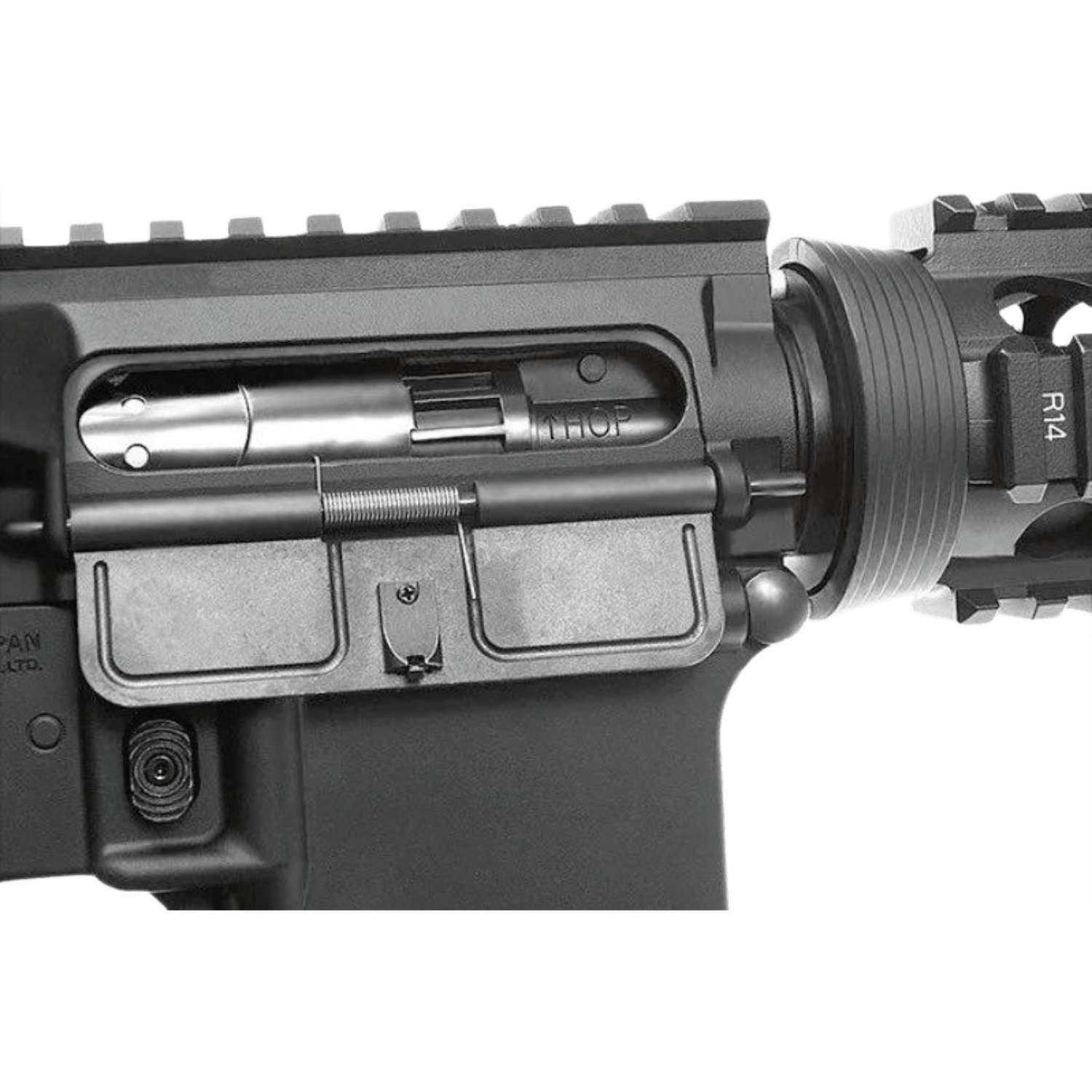 Tokyo Marui M4 SOPMOD Next Gen EBB Geri Tepmeli Airsoft Tüfek, standart Tokyo Marui 82BB Next Gen şarjör ile kullanıldığında son airsoft BB atıldığında sistemi durduran bolt-lock işlevine sahiptir. Yeni dolu şarjör takıldıktan sonra gövde üzerindeki bolt-release düğmesine basılarak atış yeniden başlatılır. Bu detay, gerçek tüfek kullanımına daha yakın bir akış sunar.