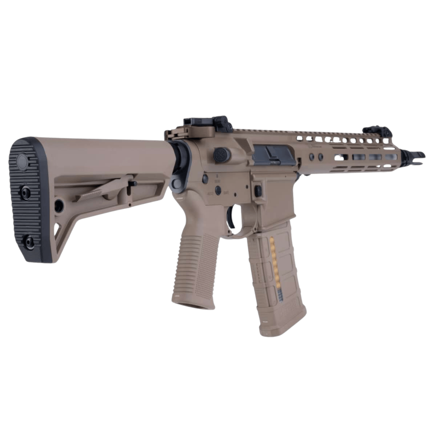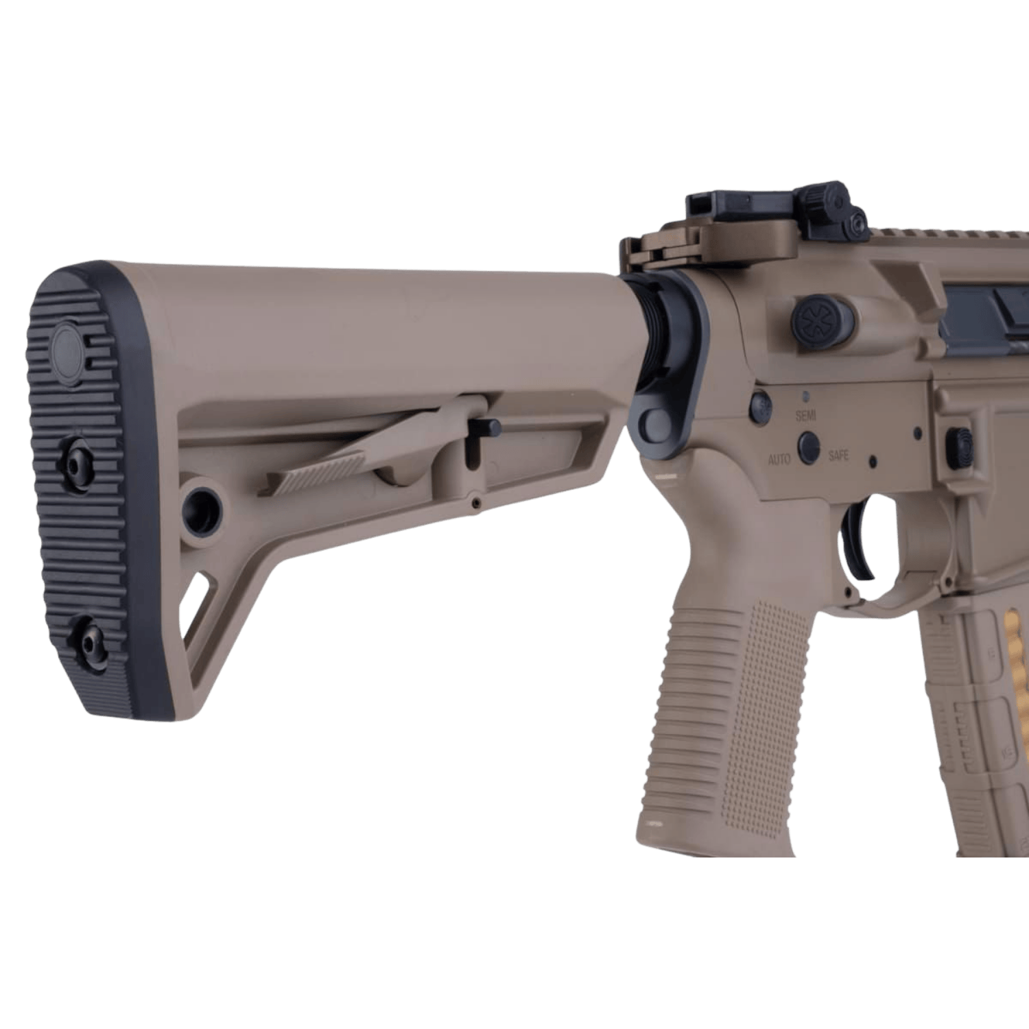 Magpul tarzı tabanca kabzası ve dipçik tasarımıyla modern AR platform görünümünü güçlü şekilde yansıtır.