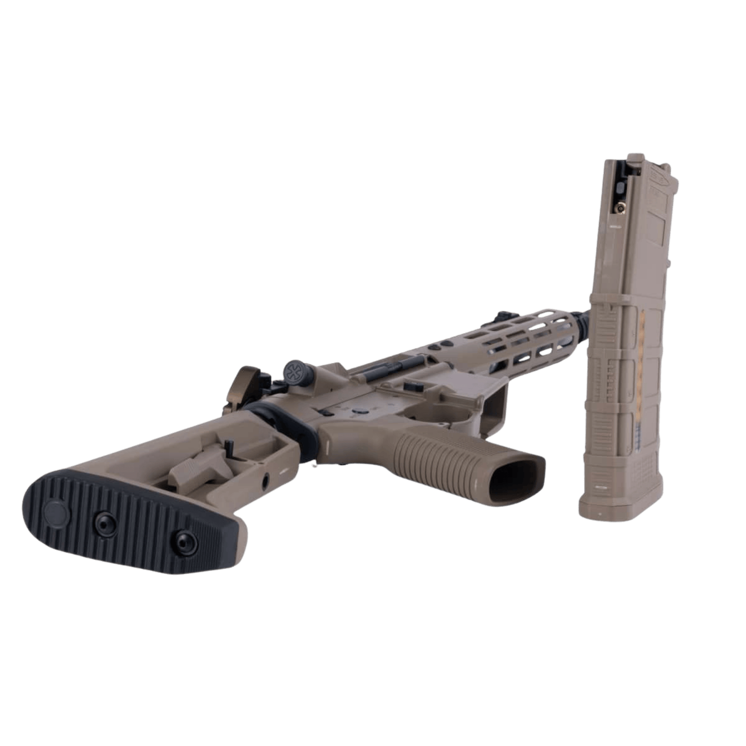 Cevap: Kutudan çıkan pencereli PMAG tarzı şarjör, dummy fişek görünümüyle daha gerçekçi bir görsel sunar. Ayrıca büyütülmüş gaz haznesi ve optimize edilmiş gaz verimliliği sayesinde daha verimli kullanım sağlar.