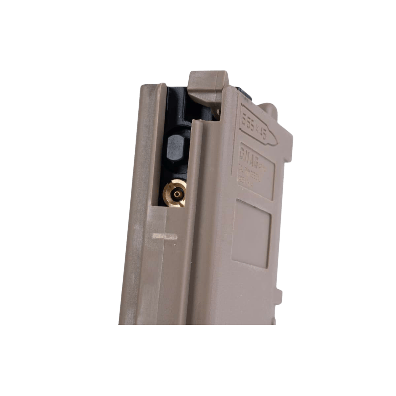 Kutudan çıkan pencereli PMAG tarzı şarjör, içindeki dummy fişek görünümüyle görsel gerçekçiliği artırırken gaz haznesinin optimize edilmiş yapısı daha kolay dolum ve tek gaz dolumunda daha fazla atış imkanı sunar.