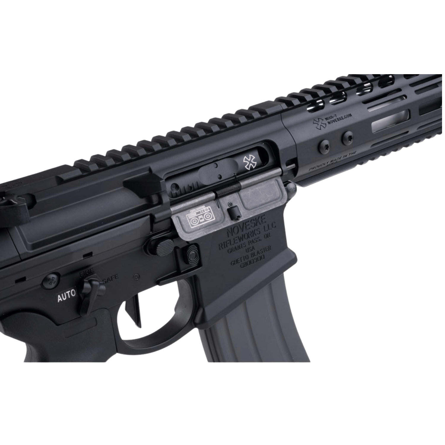 Sınırlı üretim Ghetto Blaster platformundan ilham alan bu versiyon; derin işlenmiş Noveske işaretlemeleri, özel rollmark detayları ve Armour Black dış kaplamasıyla dikkat çeken güçlü bir görünüme sahiptir.