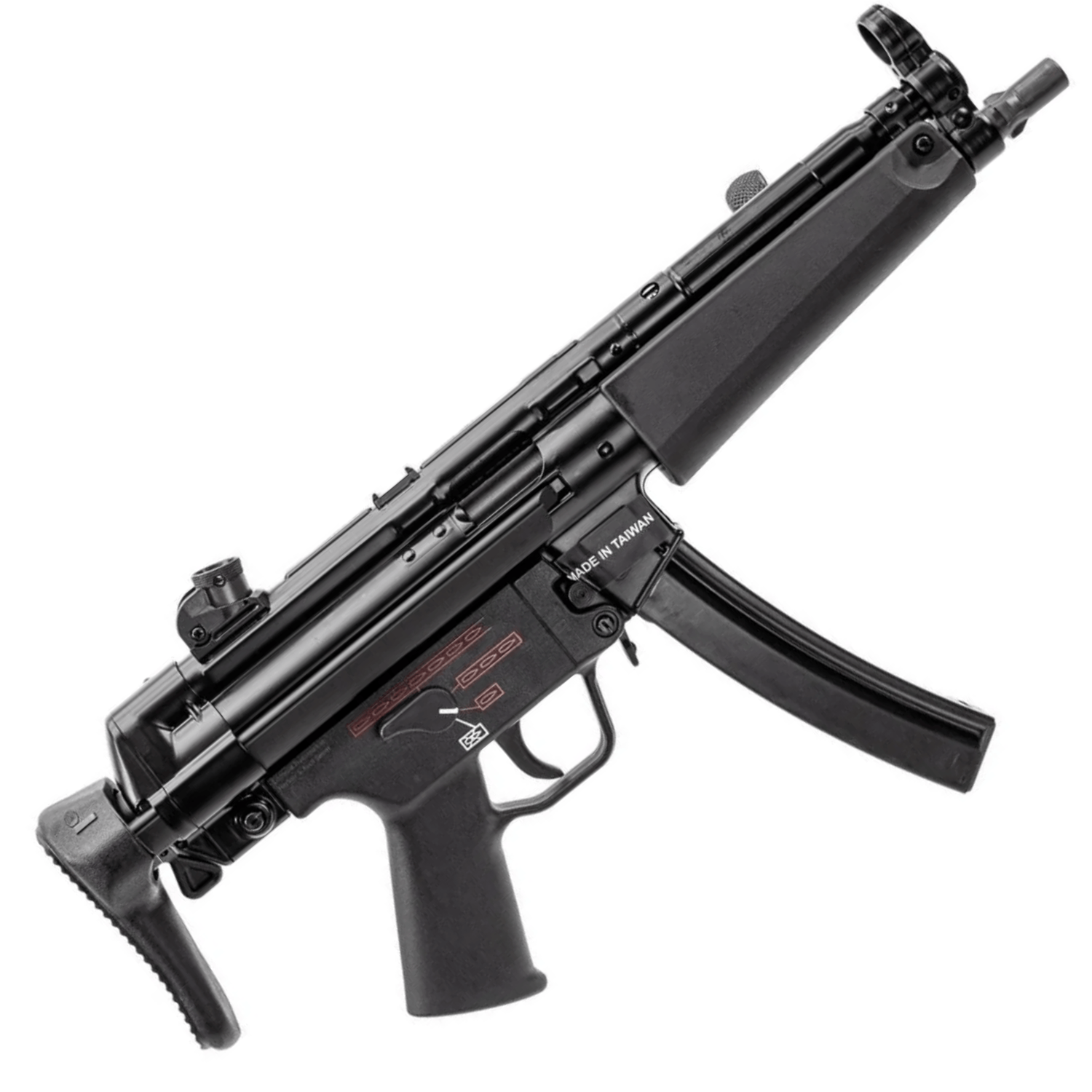 Silahın dışı MP5A5'e göre tasarlanmıştır ve logolu çelik bir gövdeye sahiptir ve ikonik katlanabilir dipçiğiyle birlikte gelir.