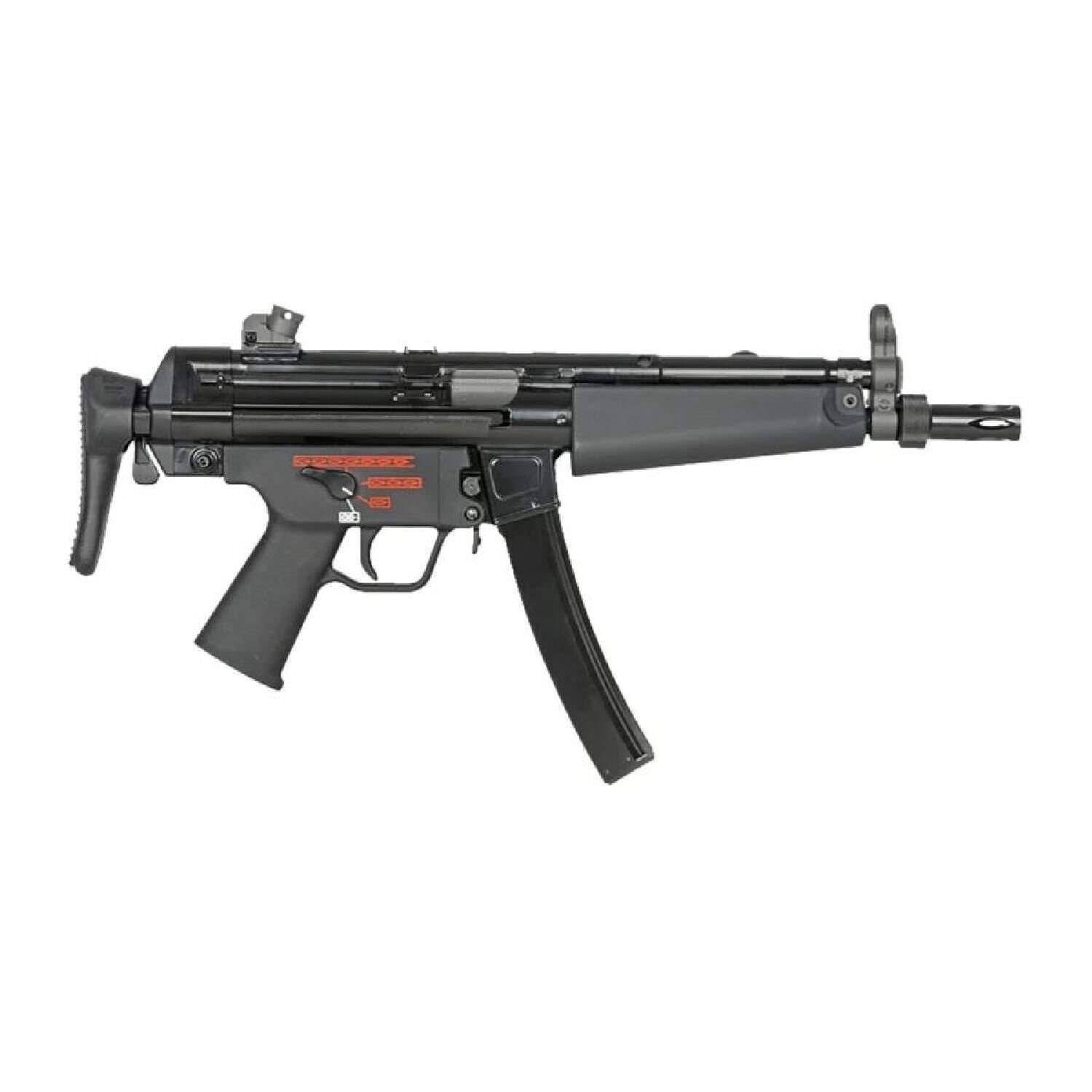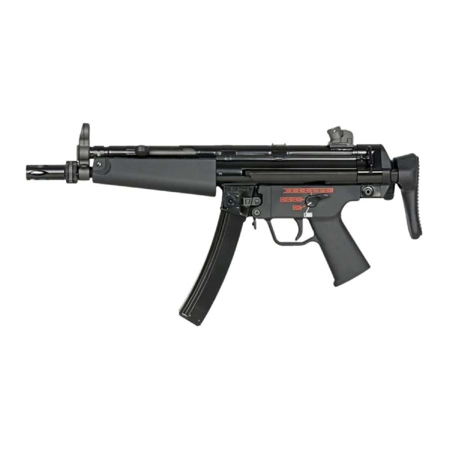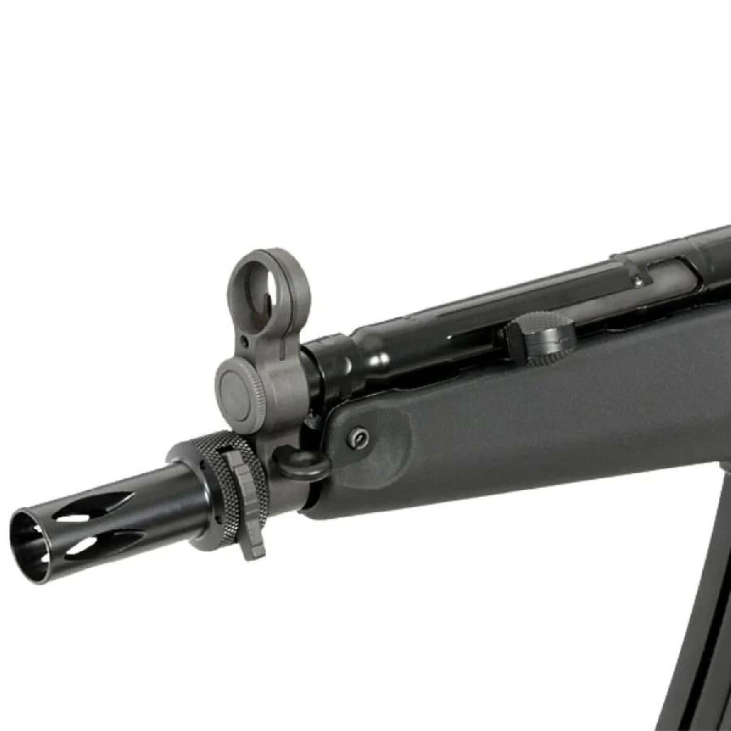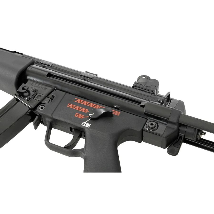 Metal ön nişangah, klasik MP5 arka nişangah sistemi ve entegre 14 mm CCW namlu dişi, susturucu ve tracer gibi aksesuarların kullanılmasına imkan verir.