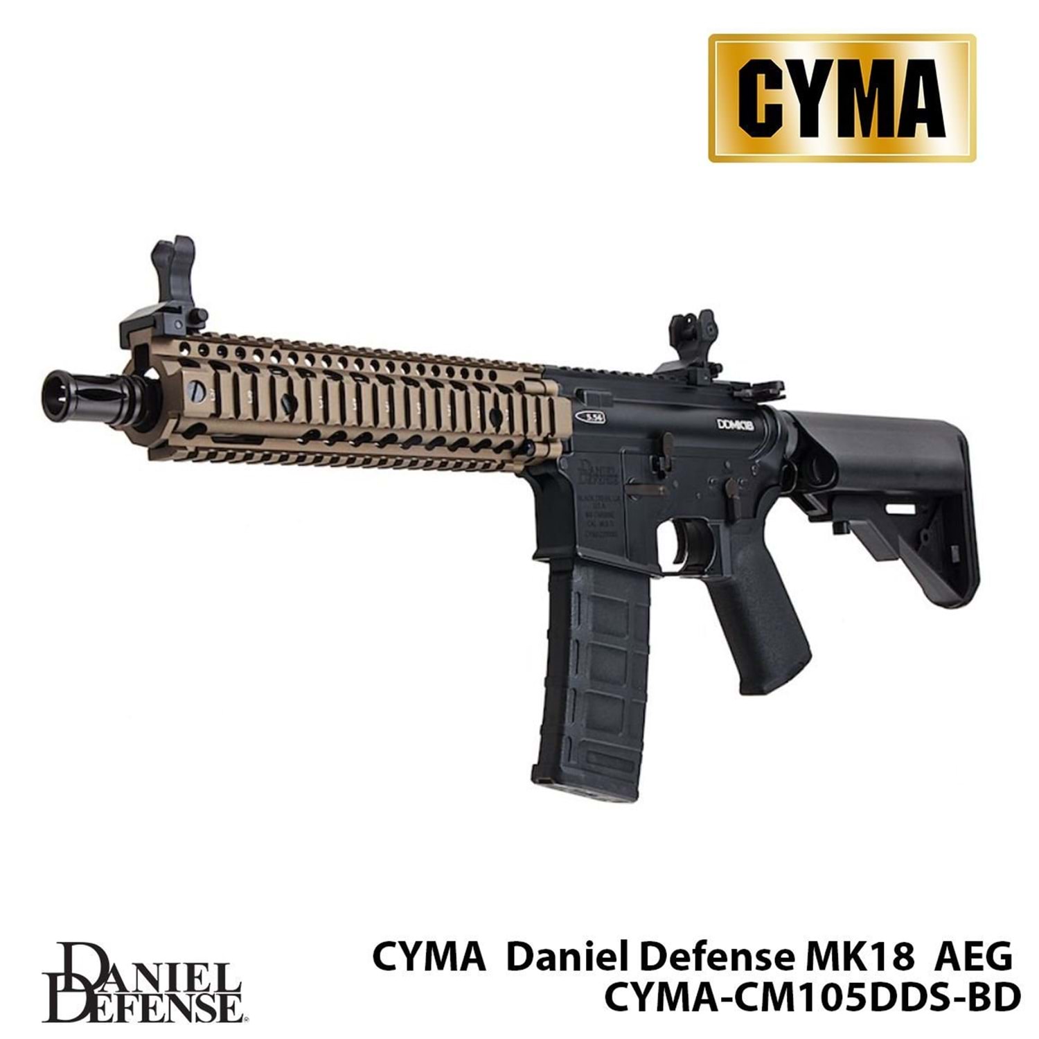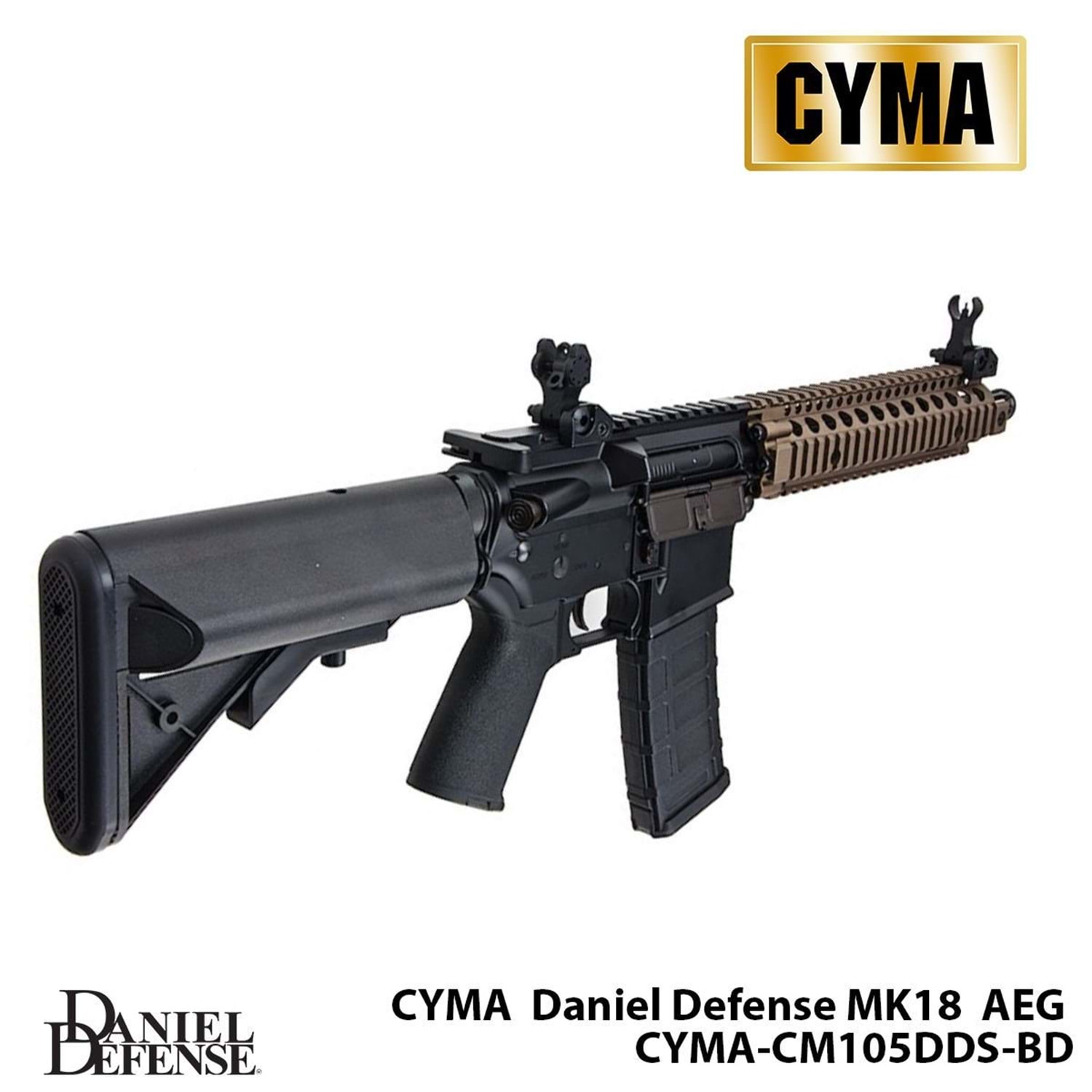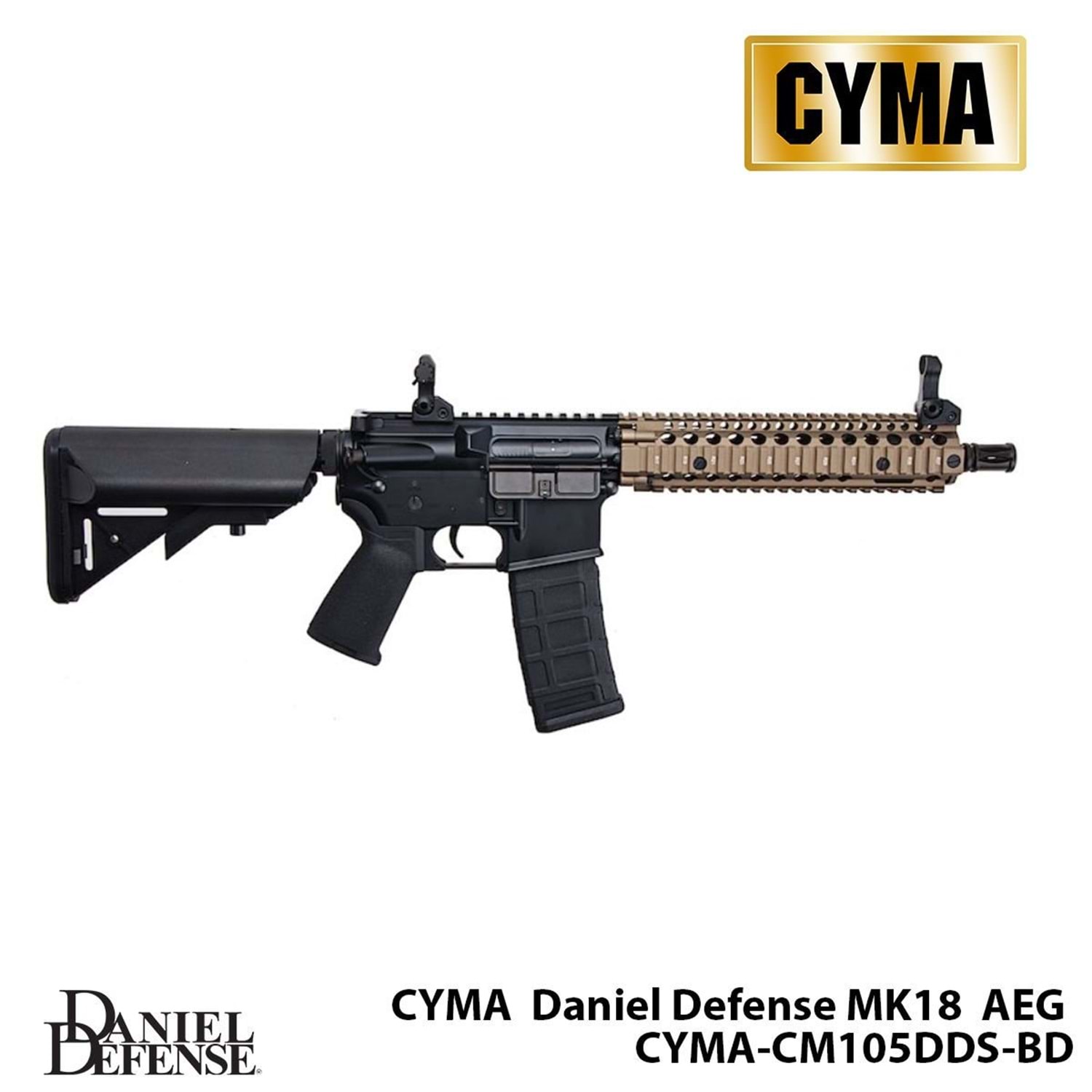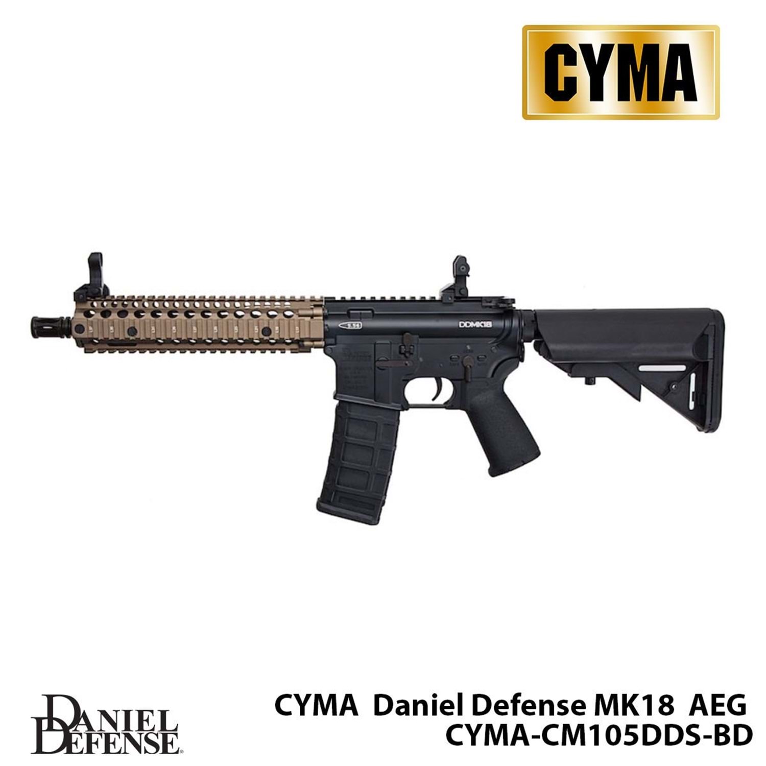 CYMA Platinum Daniel Defence MK18 elektrikli airsoft tüfeği, hem EMG hem de Daniel Defense tarafından lisanslanan tam lisanslı bir üründür ve MK18 karabina'nın 1:1 elektrikli airsoft kopyasıdır. CYMA serisinde yeni olan, elle yapılabilecek hızlı yay değişimlerine izin veren Hızlı Tampon Sistemidir (QBS). Bu verimli yeni sistem, yakalanan kılavuz çubuğa ve yaya erişmek için yalnızca tampon tüp kale somununuzun çıkarılmasını gerektirir. Artık bir yayı değiştirmek için alıcınızı kırmaya veya hatta tampon tüpünden stoğunuzu çıkarmaya gerek yok. Daniel Defence lisanslı RIS II handguard, serbest yüzen, iki parçalı, ultra hafif bir ön ray sistemidir. Tüm 20 mm Picatinny uyumlu aksesuarlar için tam uzunlukta bir montaj yüzeyi sağlar: Tutma yerleri, ışıklar, PEQ kutuları ve aradaki her şey. Entegre Çok Yönlü QD Askı Döner Montaj Noktaları, tercihlerinize uyacak şekilde modüler, sınırlı dönüş sağlar. Ultra hafif, serbest yüzen tasarım, daha hızlı hedef tespiti sağlar.