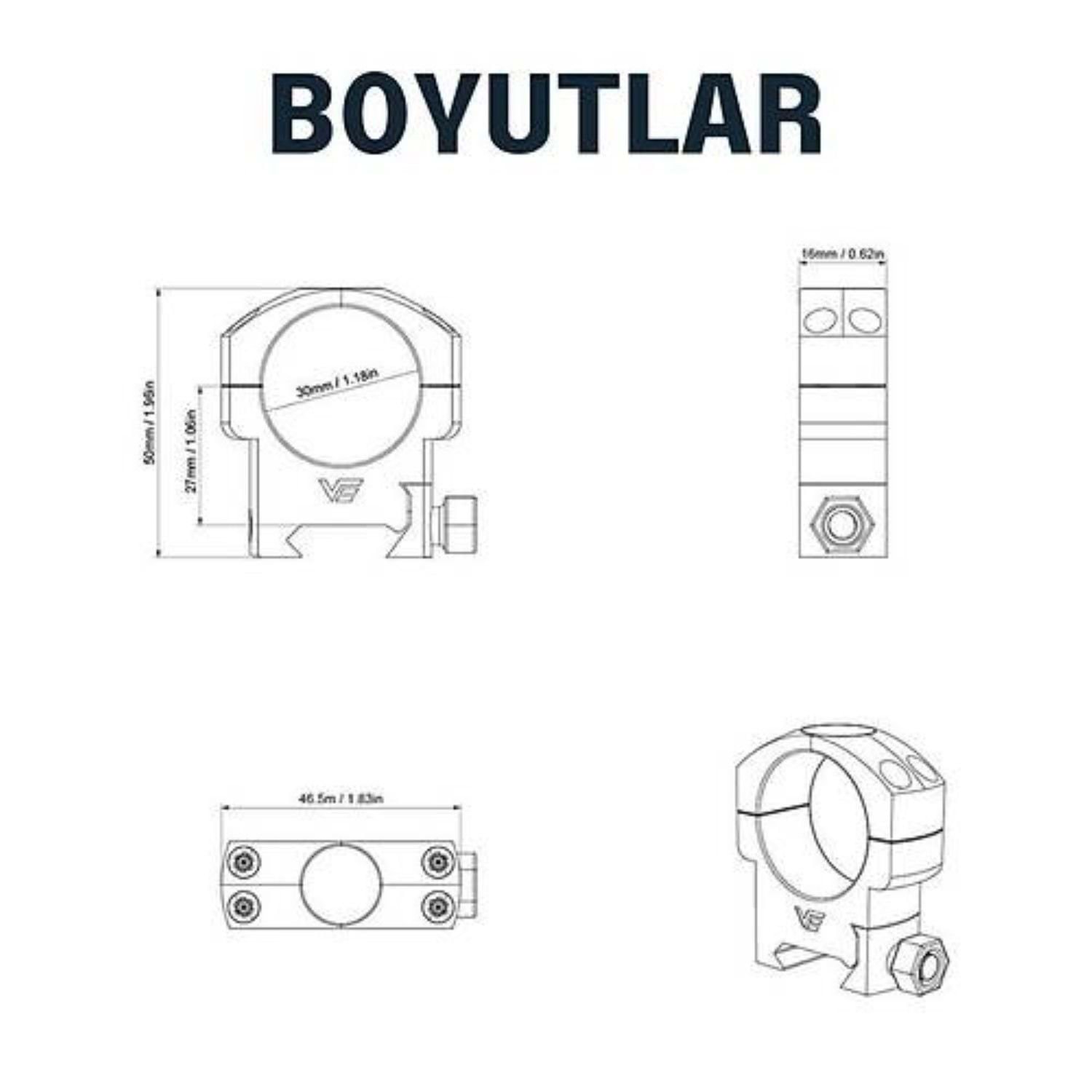 30mm dürbün için Picattiny Ray Ayağı - ORTA