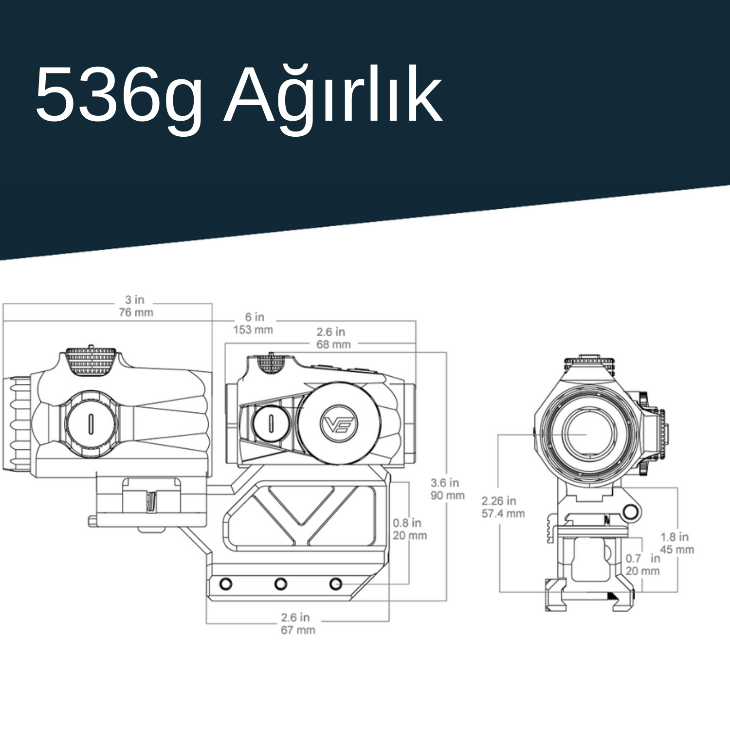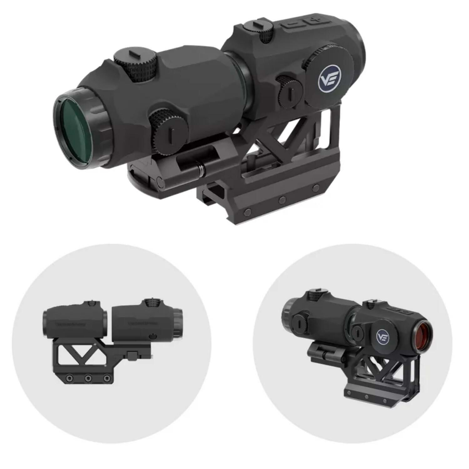 Magnifier tarafında 3x büyütme, 22mm objektif ve 70mm göz mesafesi ile daha net hedef seçimi amaçlanır.