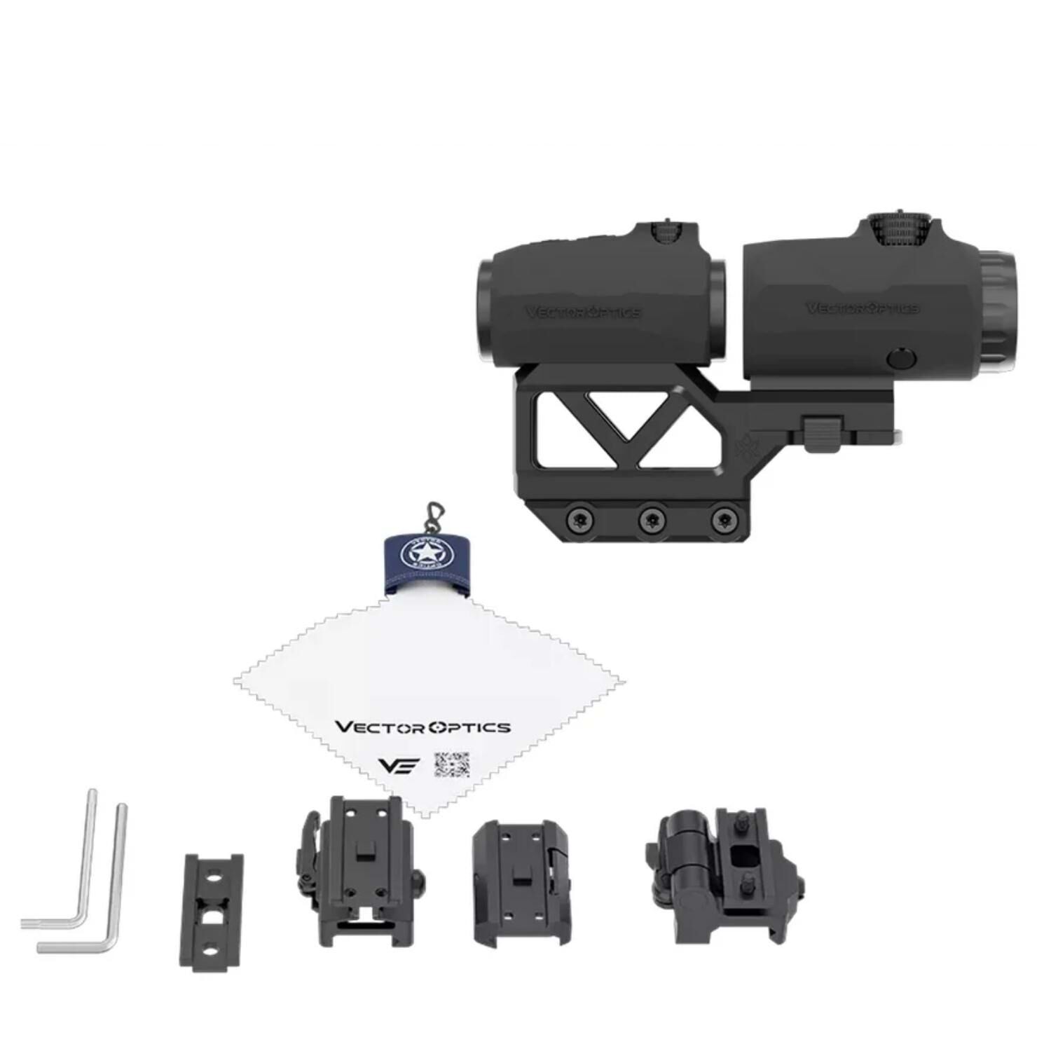 Set içeriğinde Maverick Mini red dot nişangah , Maverick 3x22 Mini magnifier ve tek parça 21mm Picatinny montaj bulunur.