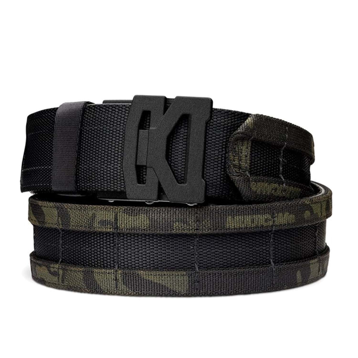 Dış Savaş Kemeri, iki sıra Molle, Süper Fiber iç astar ve tescilli Güçlendirilmiş Power-Core ™ merkezi ile çevrili Naylon Ağdır. İç Velcro kemer naylon ağdır ve pantolonunuzu tutmak ve dış Savaş kemerinin ağırlığını desteklemek için kemer halkalarından beslenir. 2 kemer sistemi, kemerin boyutunu ayarlamak için birlikte çalışır- içeri ve dışarı - ve birlikte kullanılmaları gerekir.